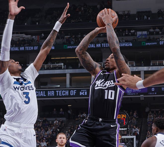 国王主场迎战森林狼,国王缺少小萨,森林狼阵容齐整,就纸面实力而言森林狼优势很大,森林狼一度领先14分,第四节时还领先12分,没想到国王把比赛拖入了加时赛,加时赛中国王占优,最终国王以5分优势击败森林狼,爆出冷门。德罗赞16中9得到33分4助3断,穆雷19中10得到26分14板2助,森林狼方面爱德华兹29中16得到43分7板4助3断,兰德尔13中5得到17分10板5助。