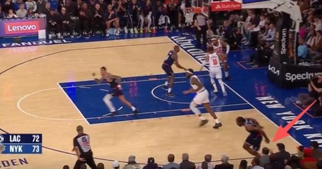 据快船队记Law Murray报道,小卡的脚踝受伤发生在昨日对阵尼克斯比赛的第三节中段,莱昂纳德在一次投篮后踩到了一位坐在场边的球迷的脚,他在前三节16投10中,拿下25分,在这次得分后就被换下场。